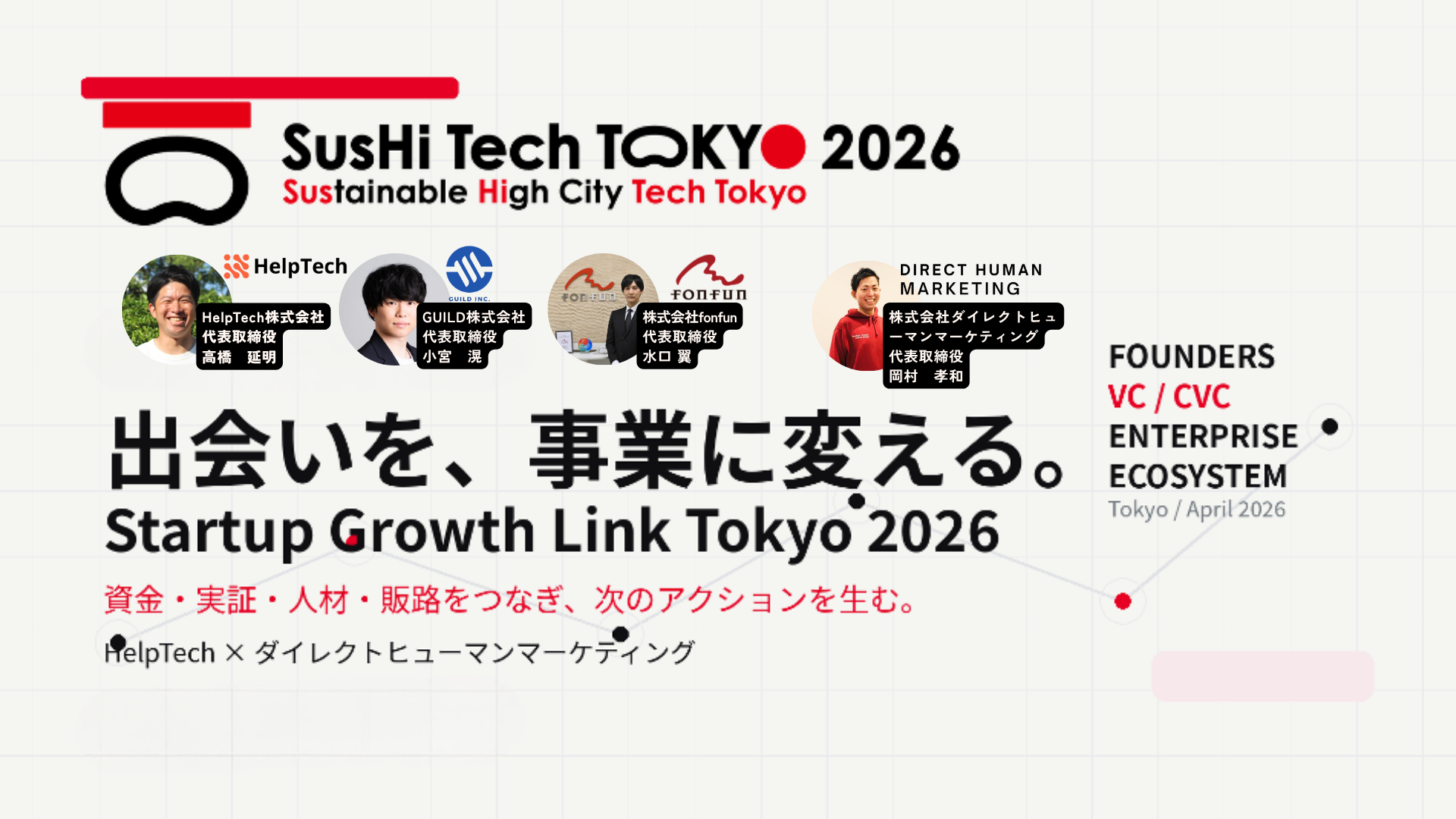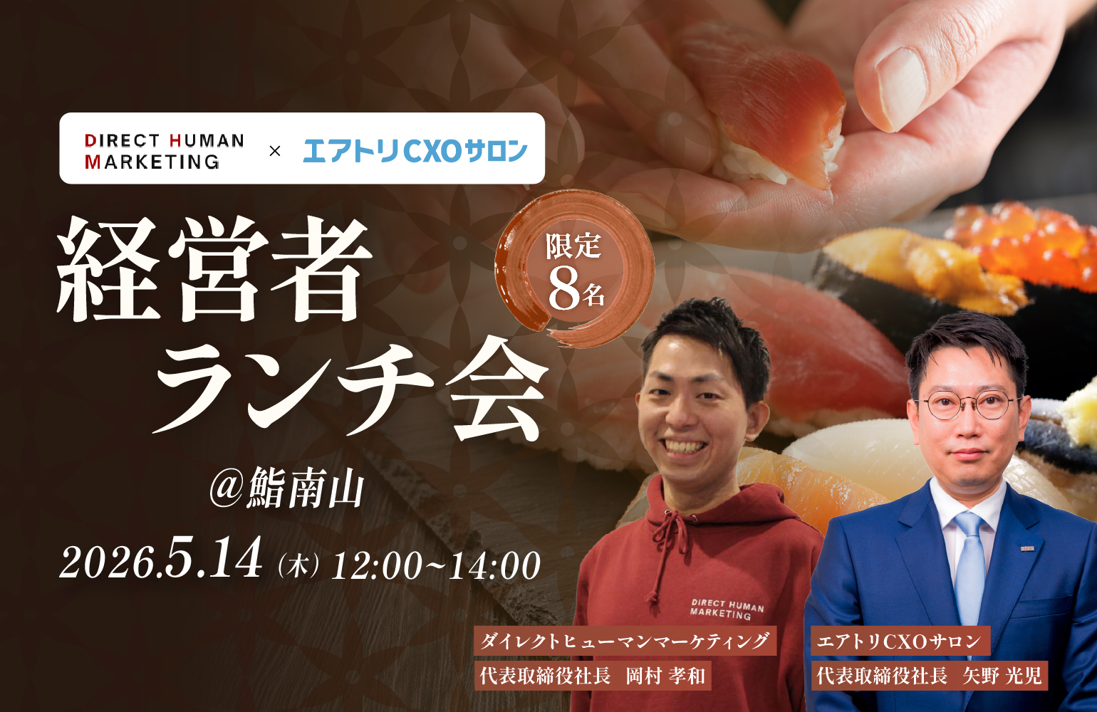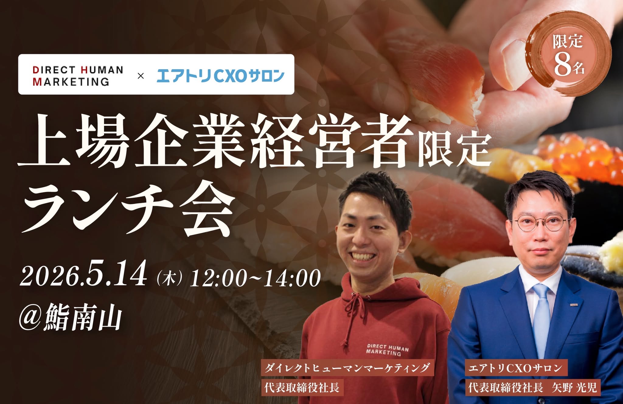 | 事業内容 | 経営者・役職者イベント企画運営、コミュニティ構築・運営代行、社外企業研修、メディアタイアップ・登壇設計 |