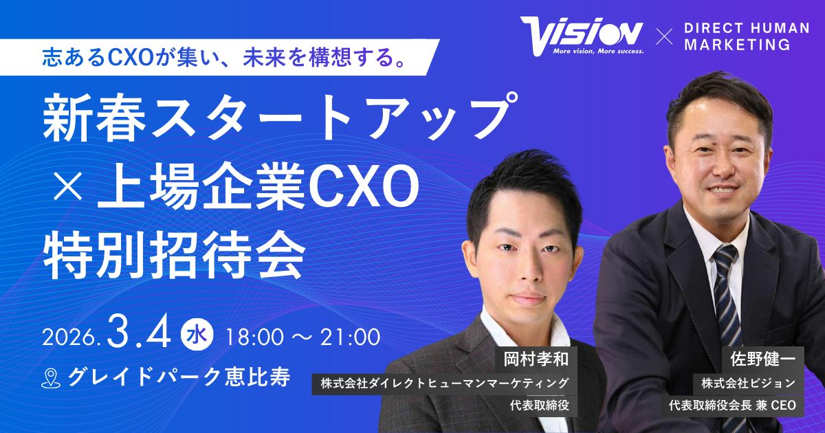 【開催登壇決定】上場企業×スタートアップ企業イベント!株式会社ビジョン(プライム上場9416)と株式会社ダイレクトヒューマンマーケティング