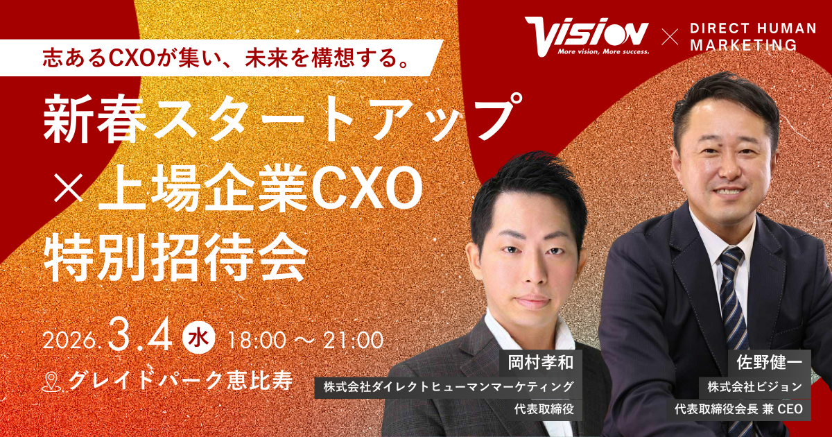 【開催登壇決定】上場企業×スタートアップ企業イベント!株式会社ビジョン(プライム上場9416)と株式会社ダイレクトヒューマンマーケティング